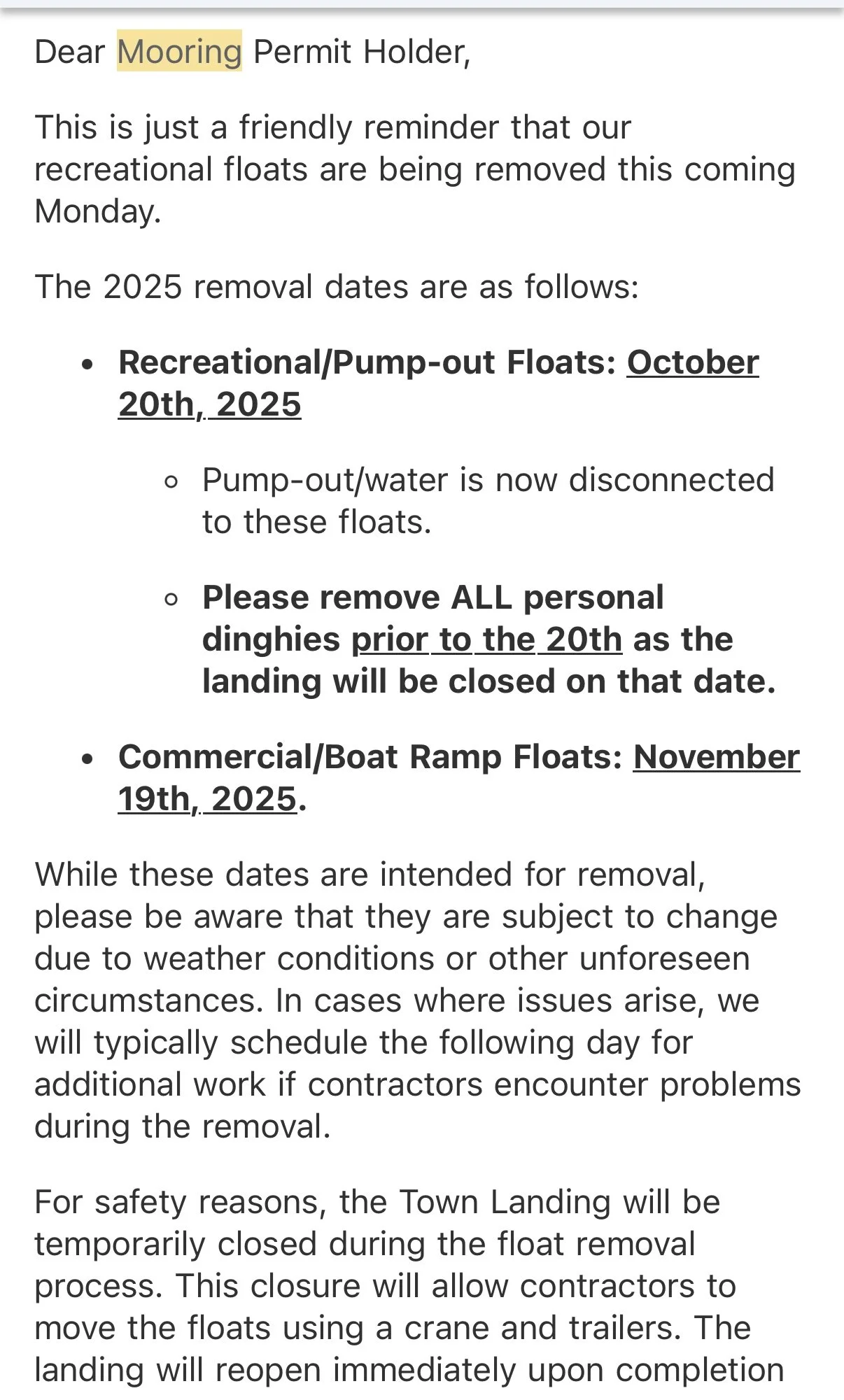 Notice from the town of Falmouth Harbor Master